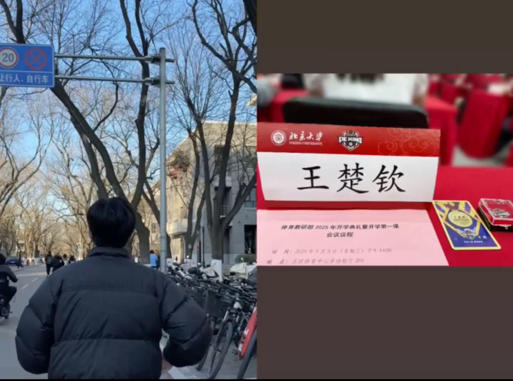 9月5日晚间,王楚钦在个人社媒上传了4张照片,里面有他去年冬天去北大申请入学的照片,还有他近期报到时座位牌的照片。他给自己写了八个字“冬去春来,又是一程”。
